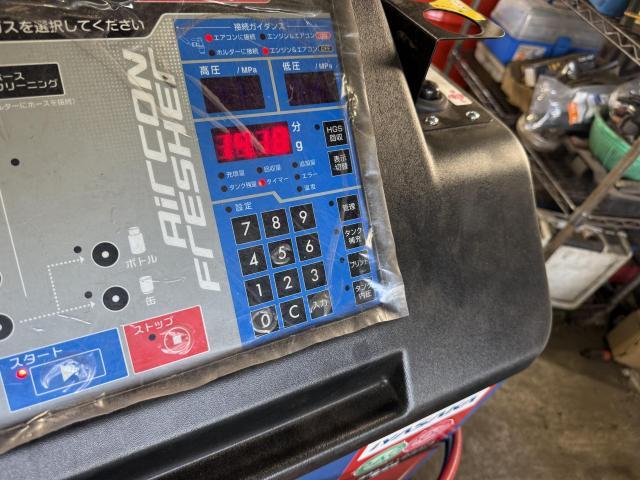 当社では新しい1234yfというガスを扱える最新のエアコン機器で作業しております。